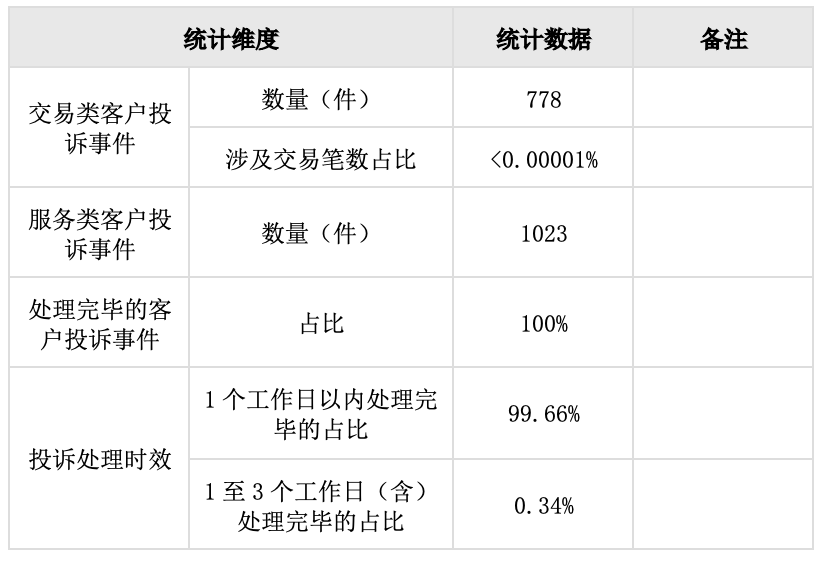 3.交易类客户投诉事件涉及交易笔数占比=客户投诉事件涉及的交易笔数/年度交易总笔数;